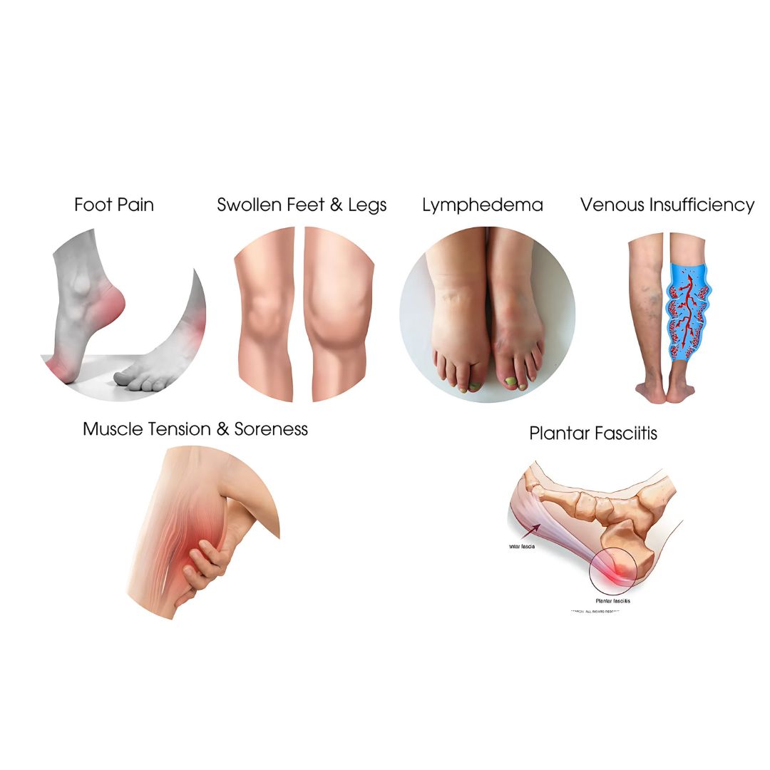 This device is ideal for individuals suffering from neuropathic foot pain, plantar fasciitis, poor circulation, diabetic neuropathy, leg swelling, or general foot discomfort. It’s also suitable for anyone looking to improve foot health and relaxation.