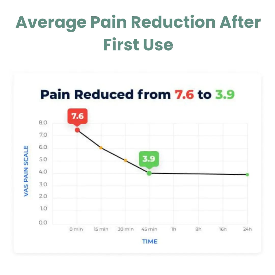 The The Premium Knee Pain Relief Massager delivers noticeable pain relief in a short period, cutting discomfort nearly in half after just one use. Users experience a significant reduction in pain levels, allowing for improved comfort and mobility throughout the day.